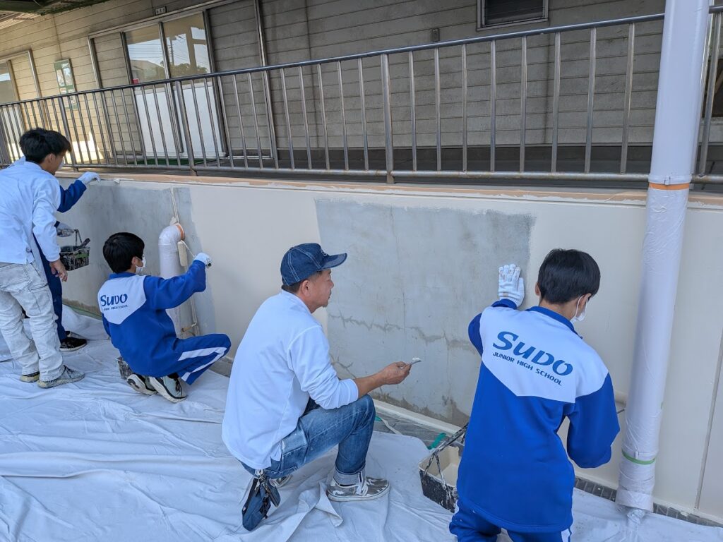2年生と一緒に職業体験で中学校の部分塗装を行いました!