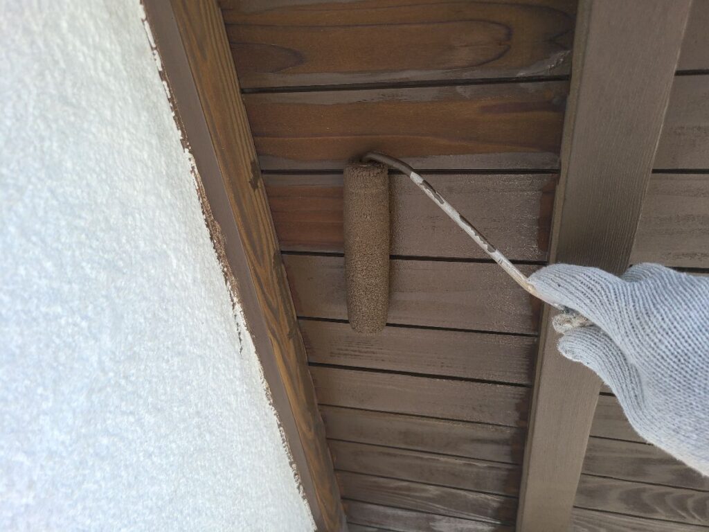 軒天と柱のお色は「ウォールナット」で、綺麗に仕上げました!