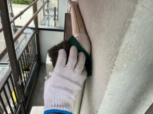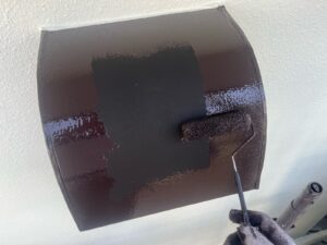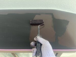 外壁はセラドングリーン、ベランダ部分はアイアインバーグで塗装させていただきました。